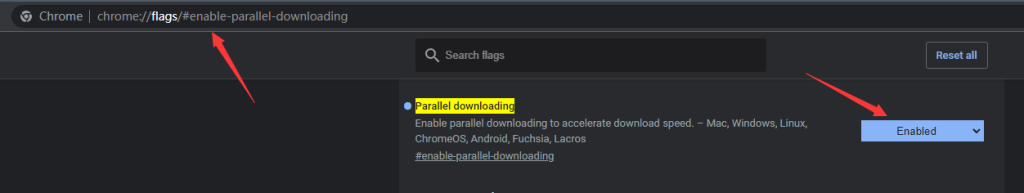 parallel downloading 改为 enabled 后重启浏览器即可打开多线程下载