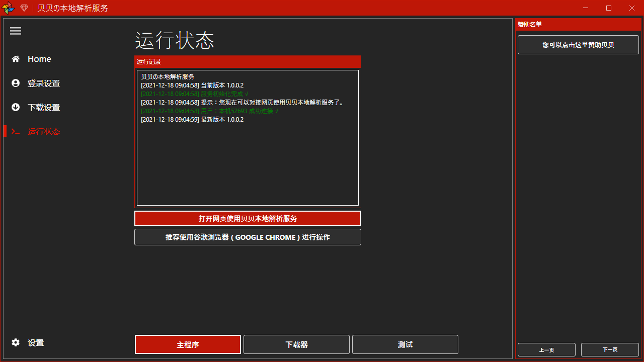 1. 下载本地解析服务软件 (推荐测试版,次选旧版) 下载后打开本地服务程序